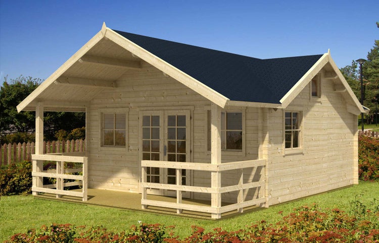 Alpholz Garten-und Freizeithaus Toronto-44 ISO Blockhaus aus Holz, Holzhaus mit 44 mm Wandstärke inklusive Terrasse inklusive Schlafboden FSC zertifiziert, Blockbohlenhaus mit Montagematerial