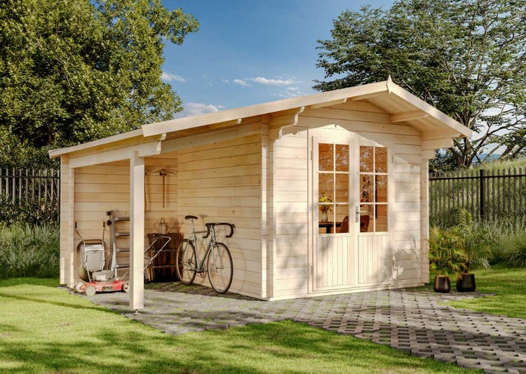 Alpholz Gartenhaus Anna-44 ISO mit Seitendach Gartenhaus aus Holz, Holzhaus mit 44 mm Wandstärke inklusive Schleppdach, Blockbohlenhaus mit Montagematerial, Naturbelassen 4,7x3m