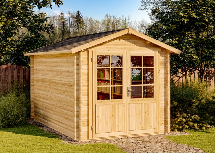 Alpholz Gartenhaus Bremen-28 C aus Massiv-holz, Gerätehaus mit 28 mm Wandstärke, Garten Holzhaus mit Imprägnierung (pinie), Geräteschuppen Größe: 250 x 400 cm, Satteldach