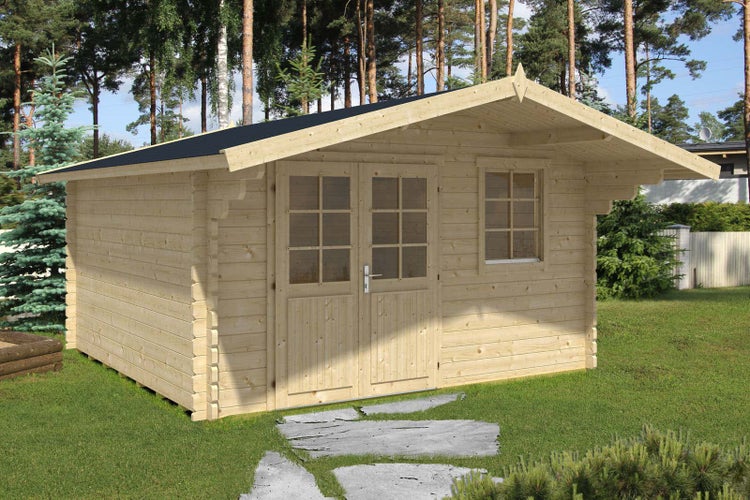 Alpholz Gartenhaus Erki-44 C ISO Gartenhaus aus Holz in natur, Holzhaus mit 44 mm Wandstärke, Blockbohlenhaus mit Montagematerial imprägniert 4,1x4,1m
