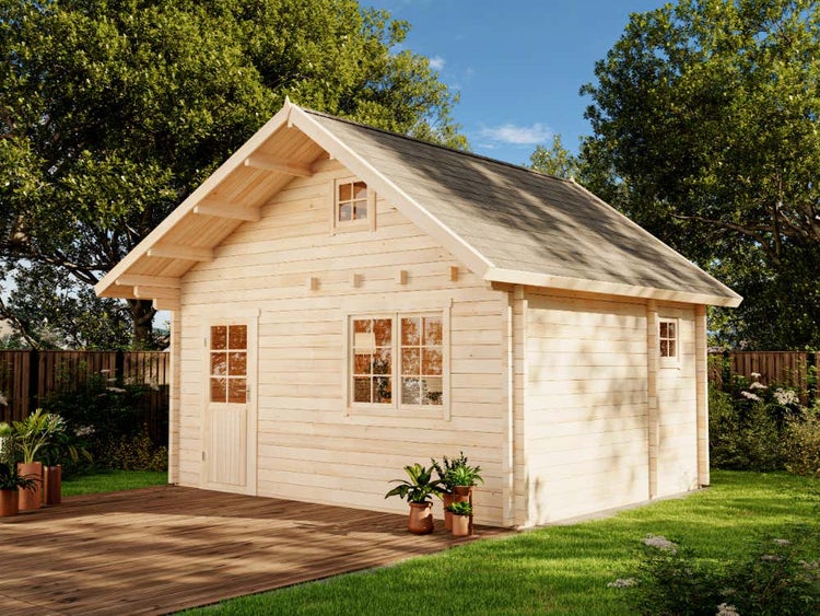 Alpholz Gartenhaus Fiona-70 ISO Blockhaus aus Holz, Holzhaus mit 70 mm Wandstärke inklusive Schlafboden FSC zertifiziert, Blockbohlenhaus mit Montagematerial, Naturbelassen 5,2x4,2m
