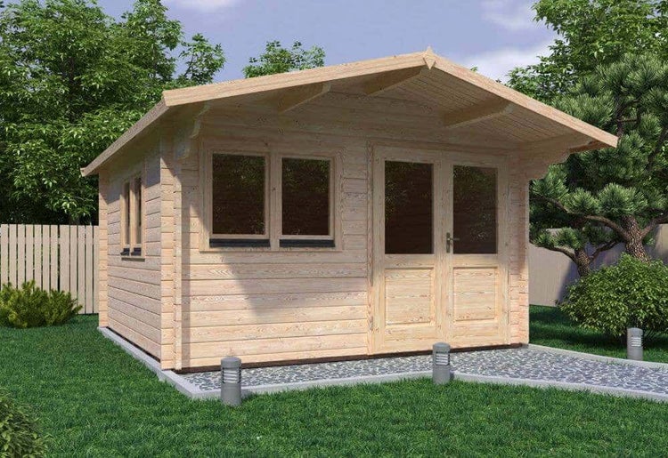 Alpholz Gartenhaus Linus Gartenhaus aus Holz, Holzhaus mit 44 mm Wandstärke, Blockbohlenhaus mit Montagematerial, Naturbelassen 4,3x4m