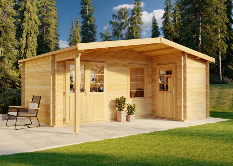 Alpholz Gartenhaus Nordkapp-40 B Gartenhaus aus Holz in natur, Holzhaus mit 40 mm Wandstärke, Blockbohlenhaus mit Montagematerial imprägniert 5,4x4,5m
