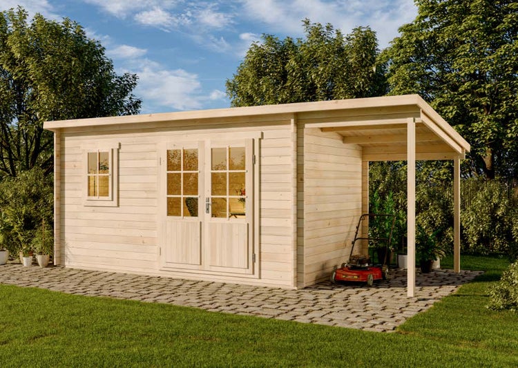 Alpholz Gartenhaus York mit Schleppdach aus Holz Gartenhaus mit 40 mm Wandstärke Gartenhütte Geräteschuppen Flachdach