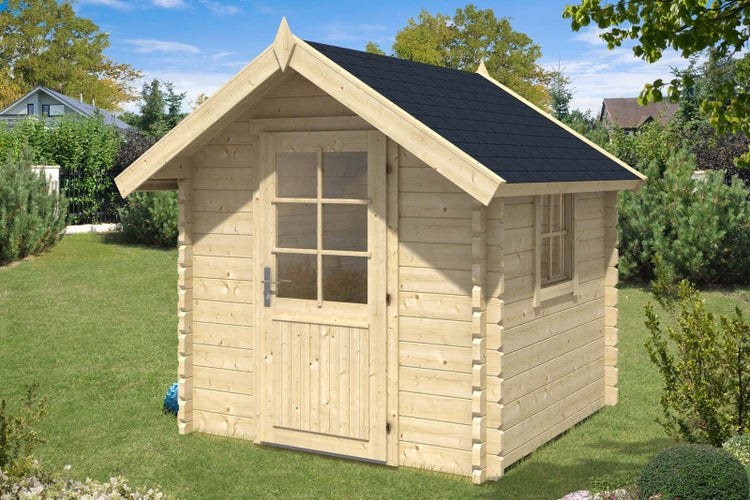 Alpholz Gerätehaus Enrico-44 ISO Gerätehaus aus Holz, Geräteschrank mit 44 mm Wandstärke, Gartenhaus mit Montagematerial, Naturbelassen