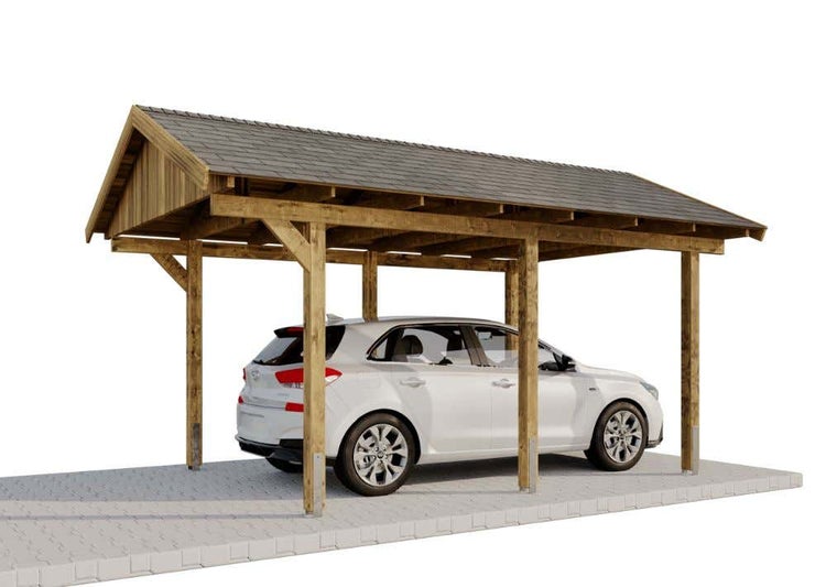 Dieses klassische Satteldachcarport schützt Ihr Auto vor ungewünschten Wettereinflüssen wie Regen, Schnee oder Hagel. Zusätzlich bietet die hochwertige Konstruktion aus Fichte/Kiefer durch eine Kesseldruckimprägnierung auch Schutz vor Insekten- oder Pilzbefall, wodurch die Langlebigkeit Ihres Carports gesichert ist.