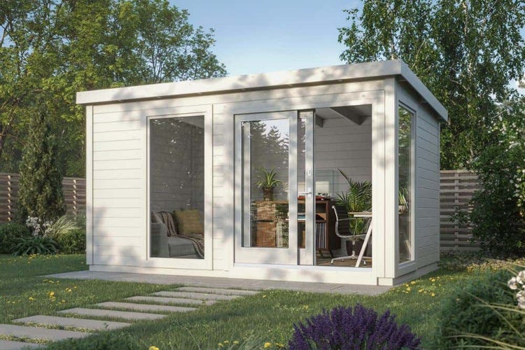 Helles und gemütliches Gartenhaus mit großen Fenstern, die einen guten Blick nach draußen ermöglichen! Entscheiden auch Sie sich für ein modernes Gartenhäuschen von Alpholz und genießen Sie Ihren neuen heimeligen Rückzugsort. Den Bausatz bauen Sie selbst in nur wenigen Tagen zusammen!