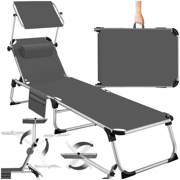 Aluminium Sonnenliege tectake Aurelie 218 x 60 x 33,5 cm, inkl. Seitentasche klappbar, mit Kopfkissen grau