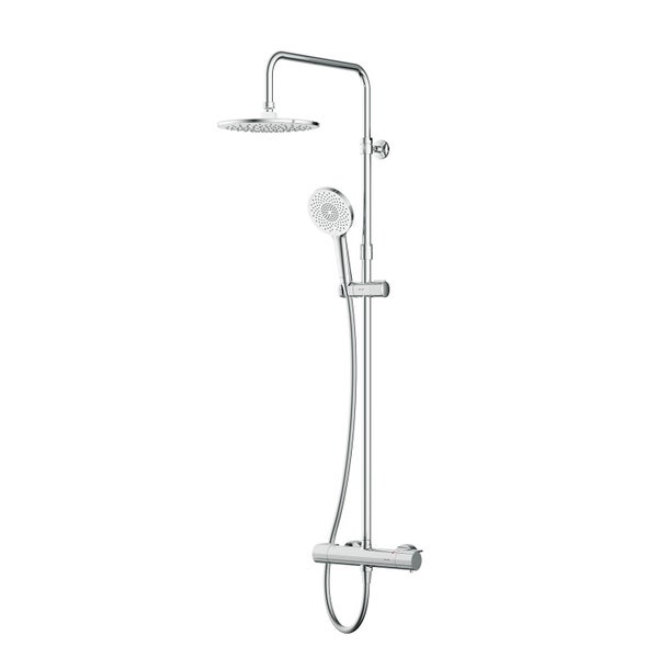 - Im Lieferumfang enthalten: Brausehalter, Brauseschlauch, Brausestange, Einhebelmischer, Handbrause, Kopfbrause, Thermostat