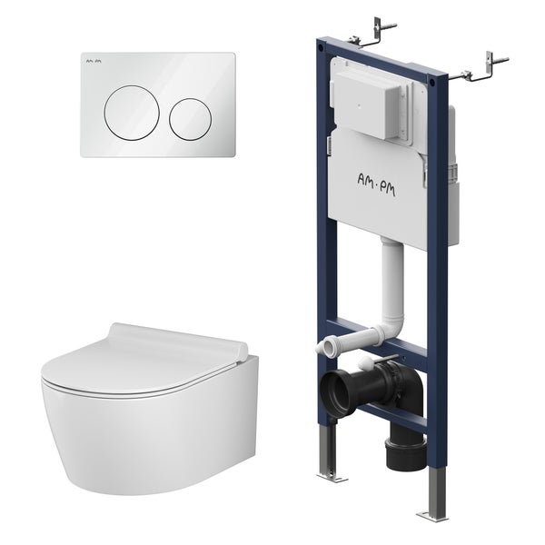 AM.PM Wand-WC Set Tiefspüler offener Spülrand weiß glänzend mit WC-Sitz , Vorwandelement und Betätigungsplatte weiß IIS90101.XB1700
