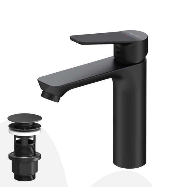 AM.PM Waschtischarmatur mit Einhebelmischer mit Klick-Ablaufgarnitur FTA82122 Hit Schwarz matt