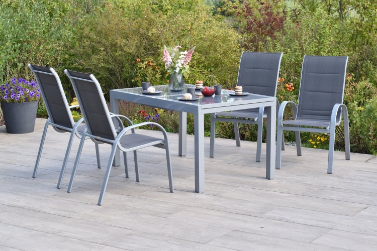 Amalfi di Lusso Set 5tlg., 4 Stapelsessel, Ausziehtisch 160 (220) x 90 cm, silber/anthrazit