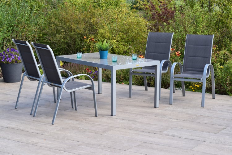 Amalfi di Lusso Set 5tlg., 4 Stapelsessel, Tisch 150 x 90 cm, silber/anthrazit