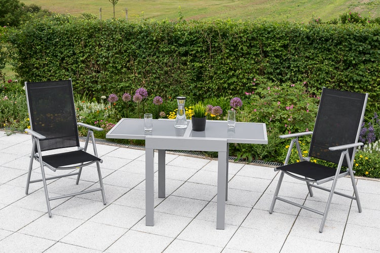 Amalfi Gartenmöbelset 3tlg., 2 Klappsessel, Ausziehtisch 65 (130) x 65 cm, schwarz