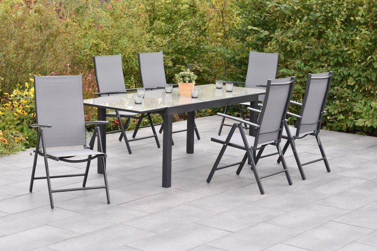 Amalfi Gartenmöbelset 7tlg., 6 Klappsessel, Semi Ausziehtisch 200 (300) x 110 cm, graphit/grau