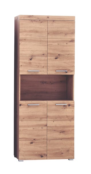 AmandaMando Bad Hochschrank 4 Türen, 1 offenes Fach Eiche Dekor. 73 X 31 X 190 cm