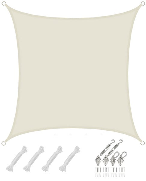 Spar Dir den Baumarkt: In unserem Set ist alles dabei, was Du für ein quadratisches Sonnensegel brauchst.