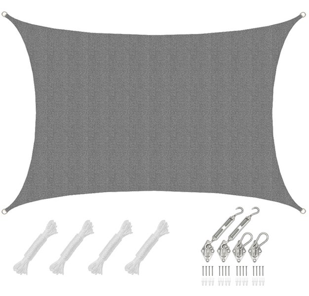 AMANKA Komplett Set: Atmungsaktives Sonnensegel mit Edelstahl Befestigung