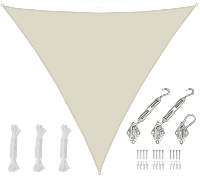 Spar Dir den Baumarkt: In unserem Set ist alles dabei, was Du für ein dreieckiges Sonnensegel brauchst.