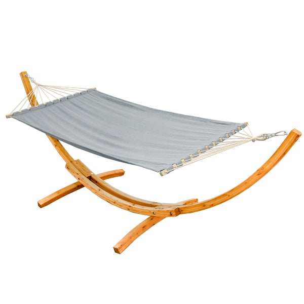 - ArtikelvorteilRIESENGROß & SUPERSCHICK - Egal ob Garten, Terrasse oder Balkon: Garantiert Dein neuer Lieblingsplatz. Mit natürlichem Holz und edlen Kurven macht der große Hängemattenständer überall eine gute Figur.