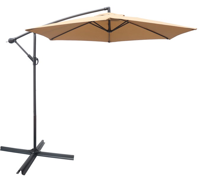 Der eckige Sonnenschirm aus Polyester ist 2,70 Meter groß und damit ideal für viel Schatten, sowie für einen verlässlichen UV-Schutz.