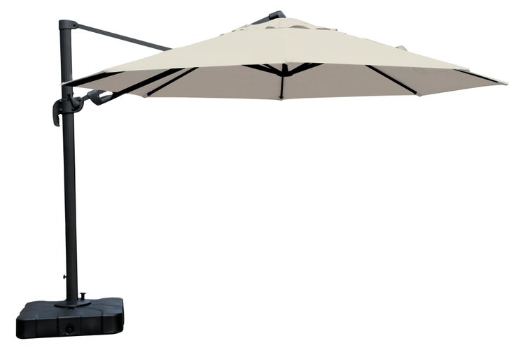Anders Hängeschirm, ø3,5 M, mit Fuss, schwarz und offwhite. 350 X 350 X 253 cm