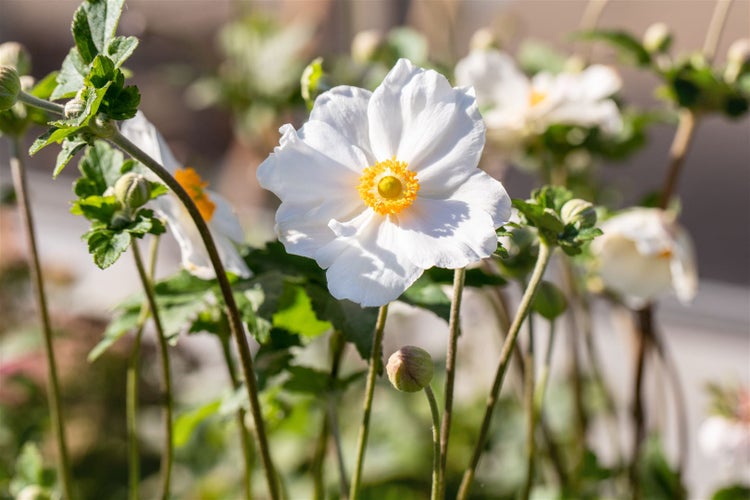Anemone japonica 'Andrea Atkinson', Herbstanemone, weiß, ca. 9x9 cm Topf