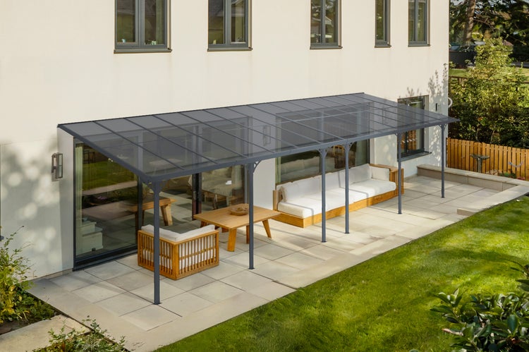 Angebaute Pergola/Carport 27m² KLEO 900L300 Aluminium Grau