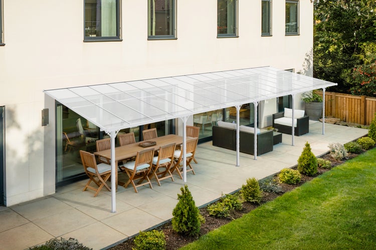 Angebaute Pergola/Carport 30m² KLEO 1000L300 Aluminium Weiß