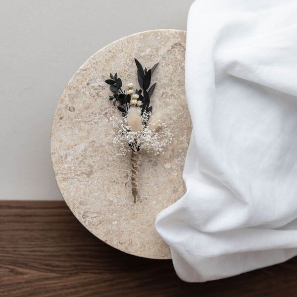 Der Anstecker aus Trockenblumen für den Bräutigam und Trauzeugen eignet sich perfekt für die standesamtliche Trauung aber auch für die kirchliche Trauung.