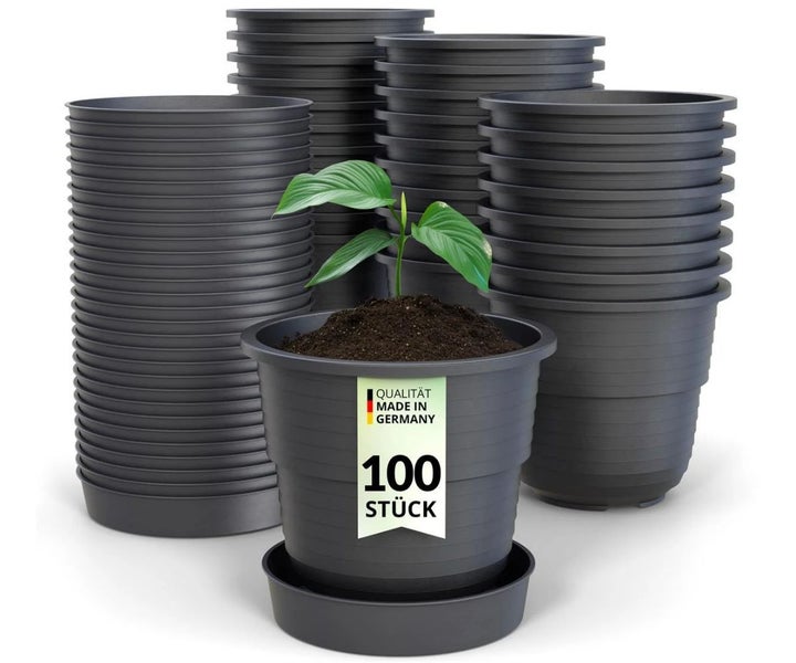 Anzuchttöpfe 10 cm Durchmesser 100 Stück mit Untersetzer, Aussattöpfe, Saattöpfe