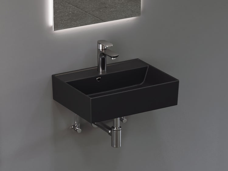 Aqua Bagno Basic Plan Waschbecken 10.16.30.02.04 – 50 x 38 cm – Schwarz Matt – Keramikbecken mit Hahnloch & Überlauf