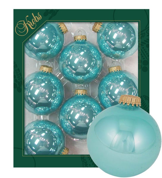 Aquamarin glänzend 7cm Glaskugeln uni, 8 Stck., Weihnachtsbaumkugeln, Christbaumschmuck, Weihnachtsbaumanhänger
