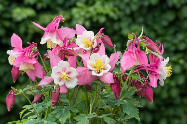 Aquilegia flabellata ‘Spring Magic Rosa-Weiß’, die zweifarbige Akelei, verzaubert als romantische Frühjahrsstaude mit elegantem Kontrast aus zartrosa Kronblättern und reinweißen Kelchen. Die filigranen, nickenden Blüten erscheinen zuverlässig im späten Frühling bis zum Frühsommer und thronen über frischgrünem, fein gefiedertem Laub, das eine attraktive, dichte Horstbasis bildet. Ihr kompakter, aufrechter Wuchs macht diese Akelei zur idealen Beetstaude für den Vordergrund von Rabatten und Bauerngärten, wo sie als Solitär ebenso überzeugt wie in harmonischer Gruppenpflanzung. Im Vorgarten setzt sie nostalgische Akzente, auf Terrasse und Balkon gedeiht sie als dekorative Kübelpflanze und ergänzt charmant Frühlingsarrangements.