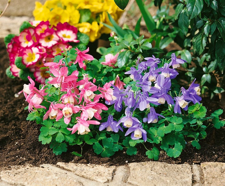 Aquilegia flabellata var.pumila 'Ministar', Akelei, blau-weiß, ca. 9x9 cm Topf