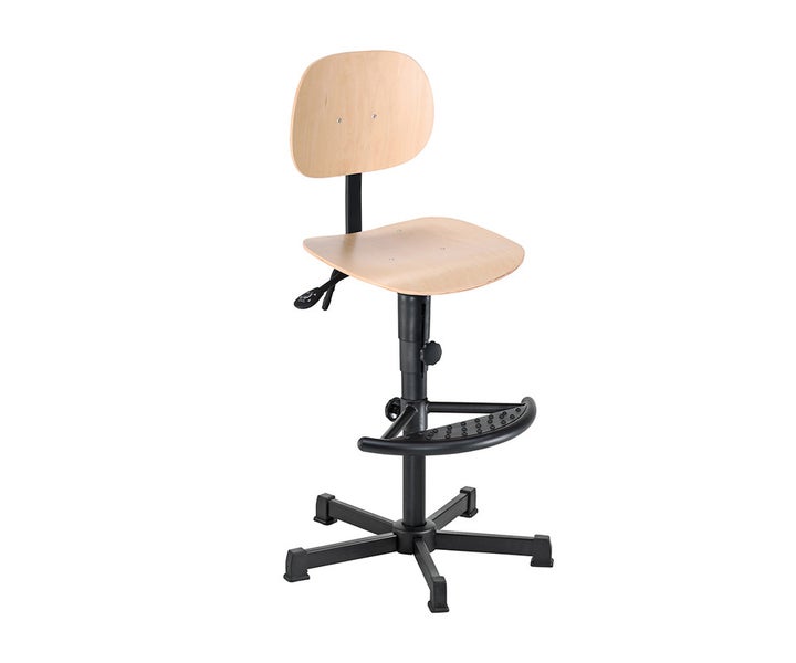 Der Arbeitsdrehstuhl W2 von meychair mit Keilnut-Höhenverstellung ist ein äußerst vielseitiger Stuhl, der speziell für den Einsatz in industriellen Umgebungen konzipiert wurde. Mit einer Tragfähigkeit von bis zu 120 kg bietet er eine robuste Konstruktion und ein zeitloses klassisches Design, das sich durch ein Sitz- und Rückenmaterial aus Buchenholz auszeichnet.