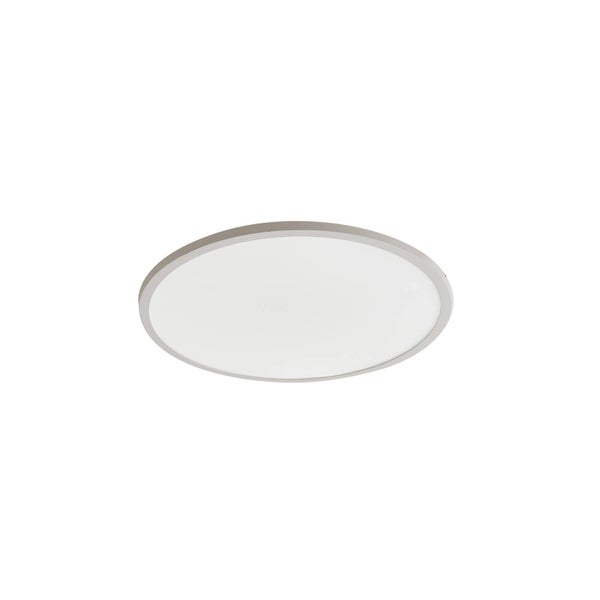Deckenleuchte mit einem weiß lackierten Rahmen aus Metall und einem Diffusor aus Kunststoff, das flexible Beleuchtung bietet. Die flache Deckenleuchte ist mit der CCT