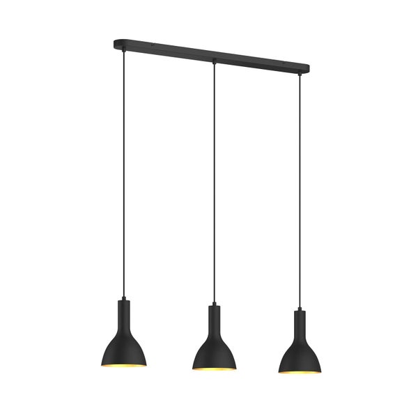 Material: Metall Farbe: schwarz, gold Länge: 90 cm Breite: 17.5 cm Fassung: E27 Leuchtmittel: 3 x 15 W LED Betriebsspannung (V): 230 Anschlussspannung (V): 230 Schutzart: IP20 Schutzklasse: ILeuchtmittel nicht enthalten