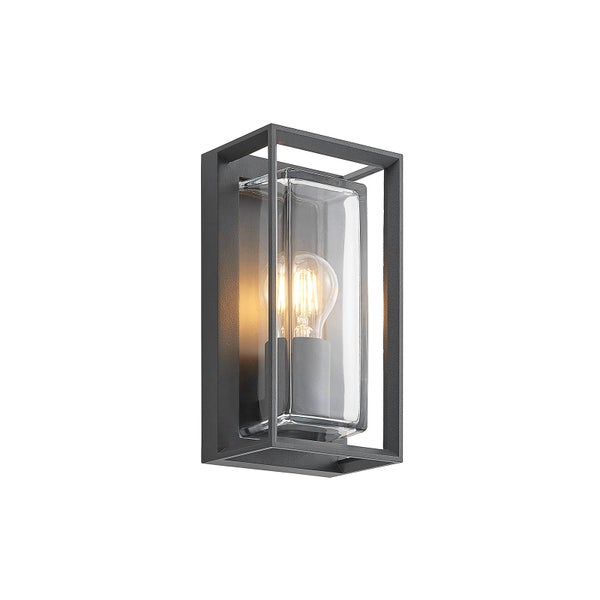 Modern geradlinig wurde die Außenwandleuchte Ismera aus Aluminiumdruckguss und klarem Glas gestaltet. Das Licht kann durch das klare Glas zu allen Seiten entweichen. Sehr schön wirkt sie mit einer Filamentlampe mit klarem Glas (nicht enthalten).