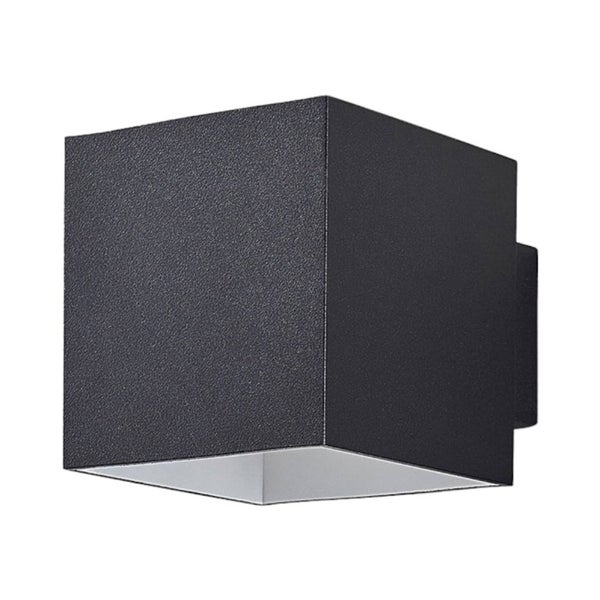 Die Wandleuchte Zuzana besteht aus einem schwarzen Würfel, der nach unten und oben hin offen ist und ein effektvolles Licht abstrahlt.
