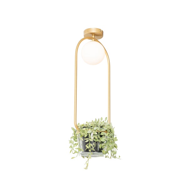 Mit dieser Isabella holst du dir einen echten Blickfang in dein Zuhause. Diese Deckenleuchte ist aus Stahl mit Glas gefertigt und in Gold gehalten. Der Glashalter eignet sich perfekt, um zum Beispiel eine Pflanze darin zu platzieren. Sie hat eine Tiefe von 17 cm, eine Höhe von 63,5 cm und eine Länge von 25 cm. Die Montageplatte hat einen Durchmesser von 10 cm und eine Höhe von 2,5 cm. Du kannst diese Leuchte mit einer G9-Glühbirne vervollständigen, vergiss nicht, sie separat zu bestellen. Mache es dir zu Hause besonders gemütlich mit einem externen Dimmer, denn diese Leuchte ist dimmbar (Dimmer nicht im Lieferumfang enthalten).