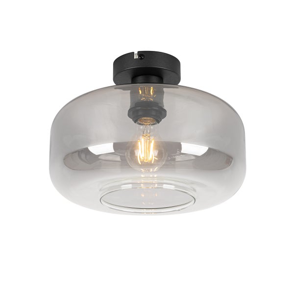 Art Deco Deckenlampe schwarz mit Rauchglas - Bizle