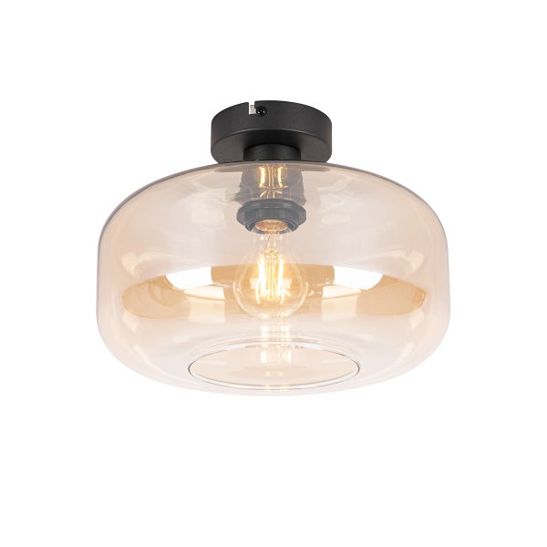 Art-Deco-Deckenleuchte schwarz mit bernsteinfarbenem Glas – Bizle