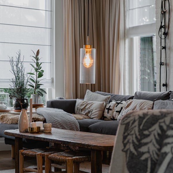 Verleihe deinem Zuhause mit der Pendelleuchte Laura mit einem eleganten Lichtpunkt ein edles Upgrade. Mit einem zeitlosen goldenen Rahmen und einem vertikalen Schirm aus mattiertem, geripptem Glas ist diese Leuchte ein absolutes Must-have für Art-Deco-Liebhaber. Mit einem Durchmesser von 12 cm und einer maximalen Höhe von 160 cm verleiht Laura jedem Raum einen Hauch von Luxus. Vergiss nicht, eine E27-Glühbirne zu bestellen, um die Leuchte zu vervollständigen. Laura ist mit einem externen Dimmer oder einer intelligenten Glühbirne dimmbar (nicht im Lieferumfang enthalten). Mit der Pendelleuchte Laura erhältst du immer das richtige Licht und einen Hauch von Klasse in deinem Zuhause!