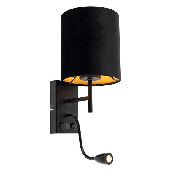 Ein Hauch von Art Deco für dein Zuhause: Das ist die Stacca. Mit dieser Wandleuchte verleihst du deiner Wand einen modernen Look. Diese elegante Wandleuchte hat einen schwarzen Samtlampenschirm mit goldfarbenem Inneren, der für einen schönen Lichteffekt im Raum sorgt. Diese charmante Wandleuchte bietet dir dank der integrierten Leselampe, die du nach Belieben einstellen kannst, die perfekte Lichtkombination. Vervollständigt wird die Stacca durch eine Glühbirne für eine E27-Fassung (40 Watt). Die Leselampe verfügt über ein integriertes LED-Modul mit 100 Lumen und 2700 Kelvin (Warmlicht). Dank der Ein-/Aus-Schalter an der Wandhalterung der Leuchte ist sie einfach zu bedienen, so dass die Leuchte und die Leselampe separat bedient werden können. Der Lampenschirm hat einen Durchmesser von 16 cm. Die komplette Wandleuchte ist 47 cm hoch. Der flexible Lesearm ist 24 cm lang. Ideal als Leselampe in deinem Schlafzimmer!