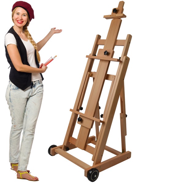 Durch ihr hohes Gewicht steht die Staffelei sehr stabil und mit den praktischen Rollen ist die Staffelei leicht zu bewegen.