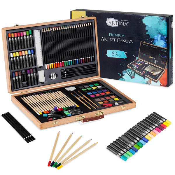 Das 89teilige Malset Genova von Artina enthält eine große Auswahl an Malutensilien zum Malen und Zeichnen. Die reichhaltige Auswahl an Künstlerutensilien garantiert ein erfolgreiches Malerlebnis.