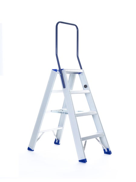 ASC Eurostairs Stufenstehleiter zweiseitig eloxiert mit Bügel 4 Stufen
