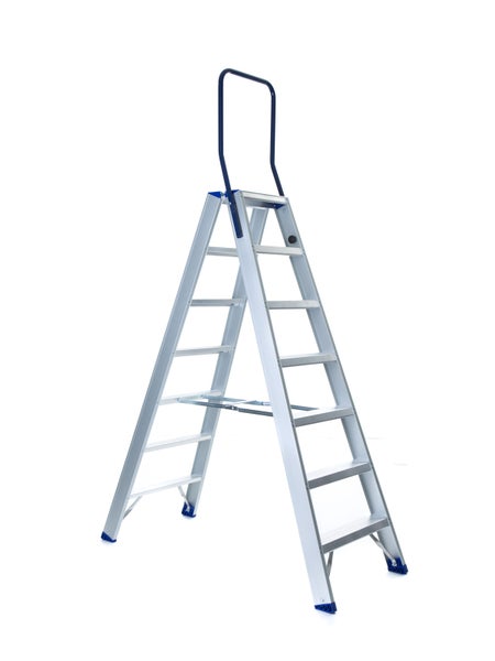 ASC Eurostairs Stufenstehleiter zweiseitig eloxiert mit Bügel 7 Stufen