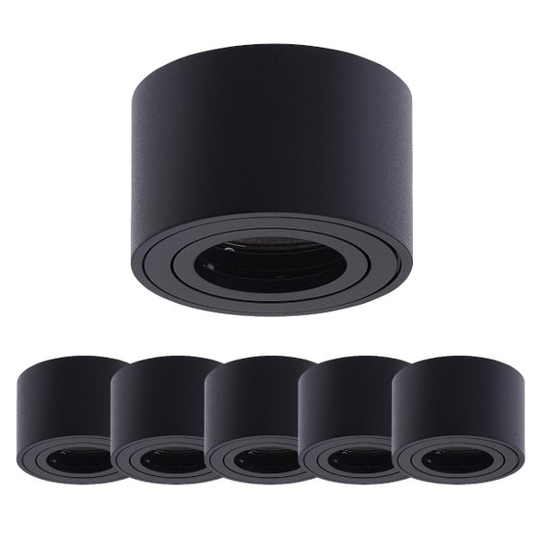 Aufbauleuchte Lile S schwarz 6 Stück LED Spots 230 V Aufbaustrahler Aluminium rund perfekte Deckenbeleuchtung Spotrahmen für niedrige Räume